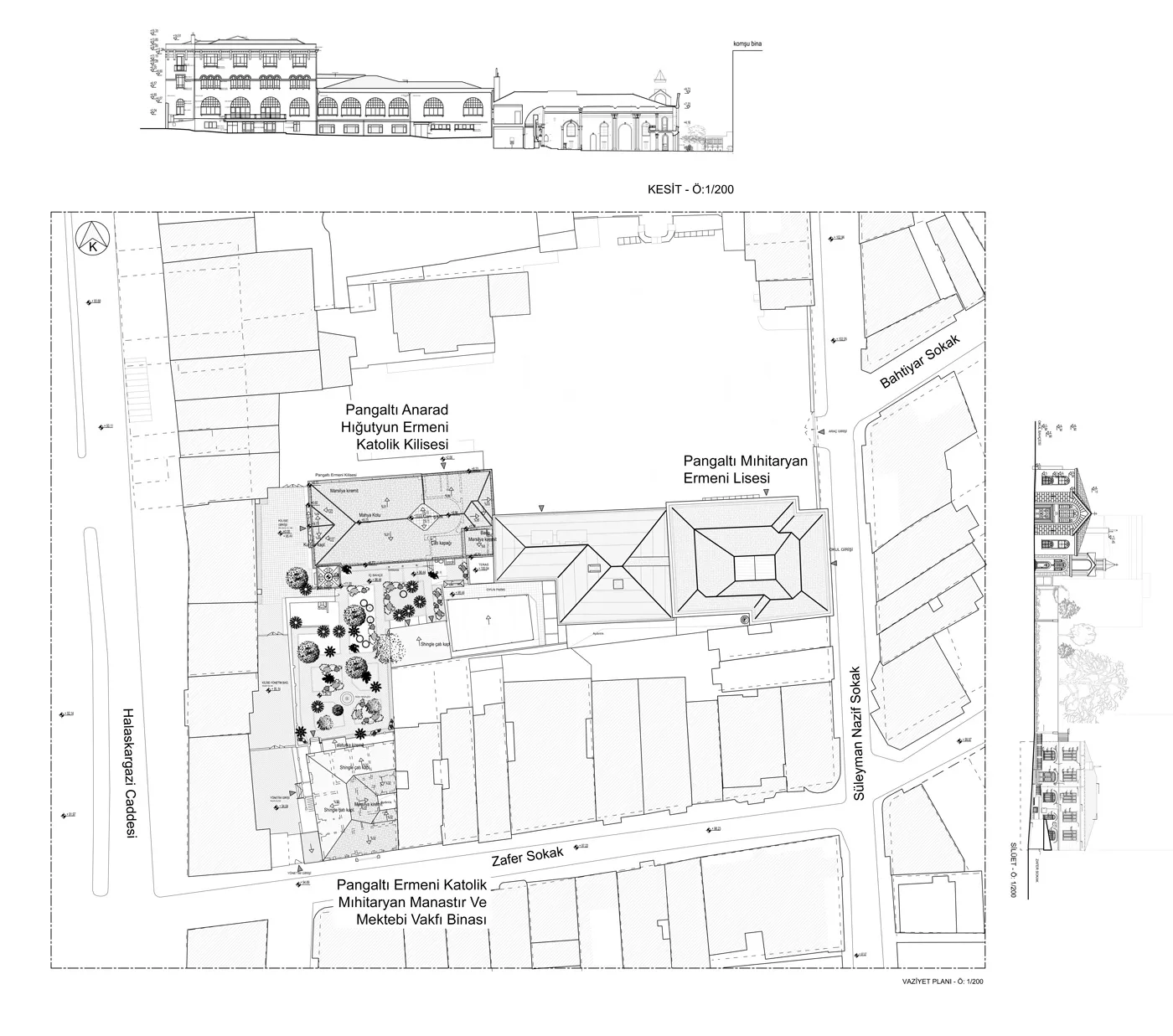 Halaskargazi Caddesi üzerinde konumlanan Pangaltı Ermeni Katolik Mıhitaryan Manastır ve Mektebi Vakfı binaları 19.yy ortalarına tarihlenmektedir. Okul binası, mimar Kegham Kavafyan tarafından 1917 yılında hazırlanan projeye göre yenilenmiştir.