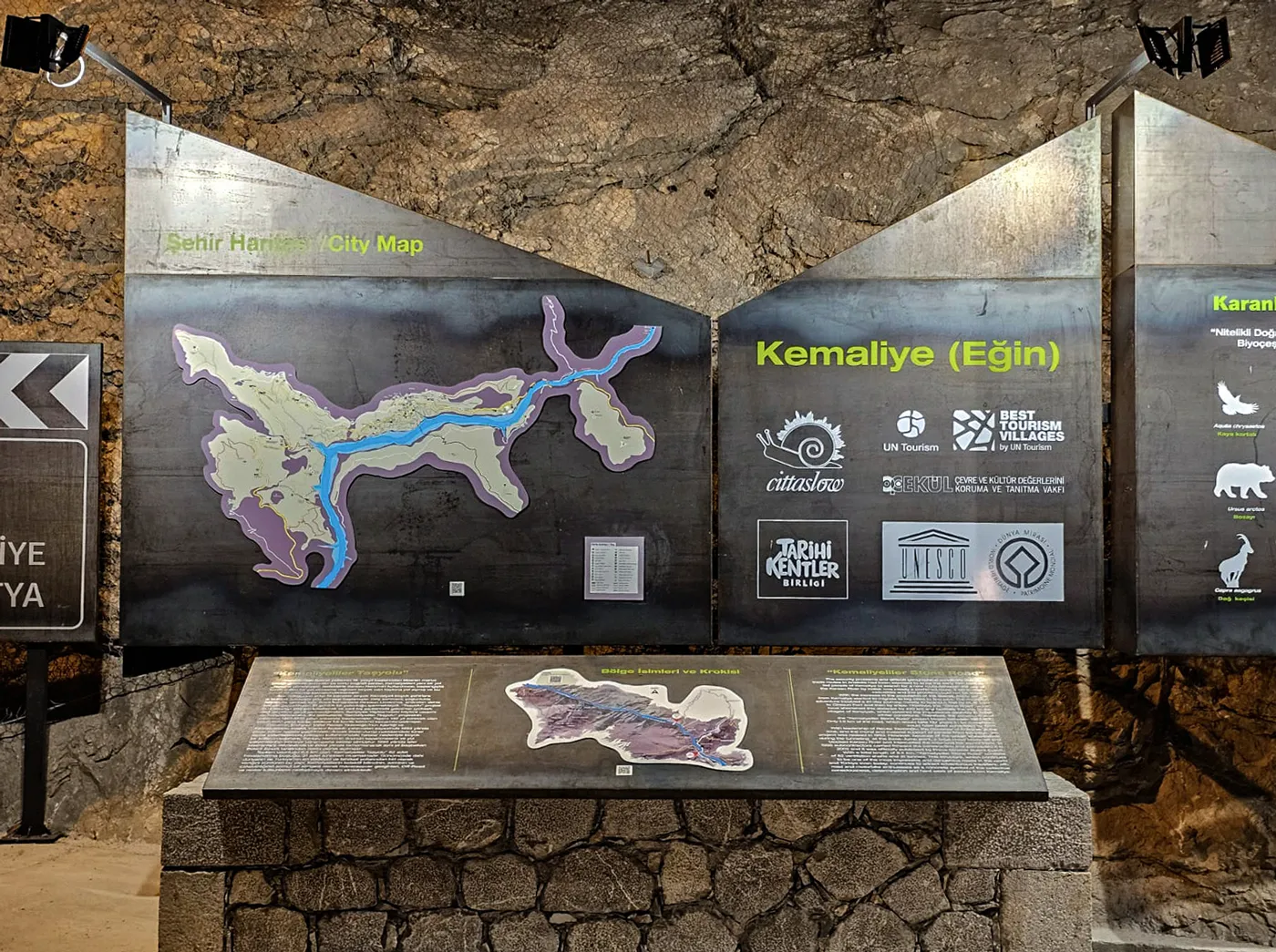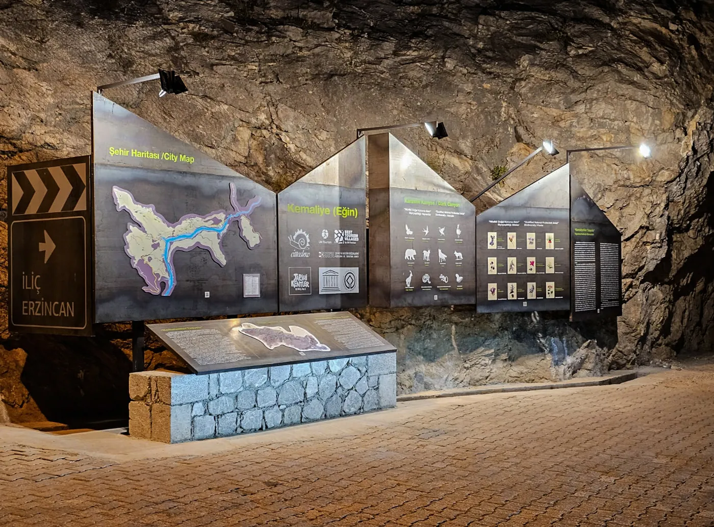 24.06.2024 | Kuzeydoğu Anadolu Kalkınma Ajansı (KUDAKA) desteği ile Kemaliye Belediyesi için tasarlamış olduğumuz Taşyolu Açık Sergi Alanı'nın yapımı tamamlandı. Unesco Geçici Miras Listesi'nde yer alan, aynı zamanda Tarihi Kentler Birliği ve Cittaslow üyeliklerine sahip Kemaliye'nin giriş odağı olarak kabul edilen Taşyolu başlangıç tünelleri bölgesinde konumlanan sergi alanı yerleşim dokusunun kültürel ve doğal envanterine dair bilgiler içeren harita ve görsel kompozisyonlardan oluşuyor.