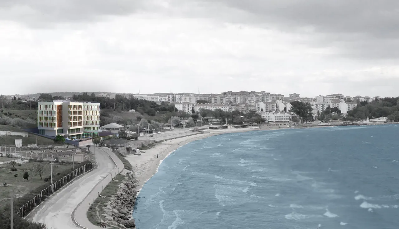 Hampton Hotel, Çanakkale Boğazı girişinde, Hamzaköy-Gelibolu'da konumlanmaktadır. Daha önce yine aynı yerde bulunan ve statik analizler sonucu yıkım kararı alınan eski otel binasının yerine uygulanmıştır. Kent hafızasında önemli bir yere sahip olan önceki binanın yeniden yapımı aşamasında, kontur-gabari hatlarının korunması şartı getirilmiştir. Yeni binanın projelendirme süreci günümüz otel normlarına uygun bir anlayışla gerçekleştirilmiş, planimetri ve cephe uyumunun sağlanması hedeflenmiştir.