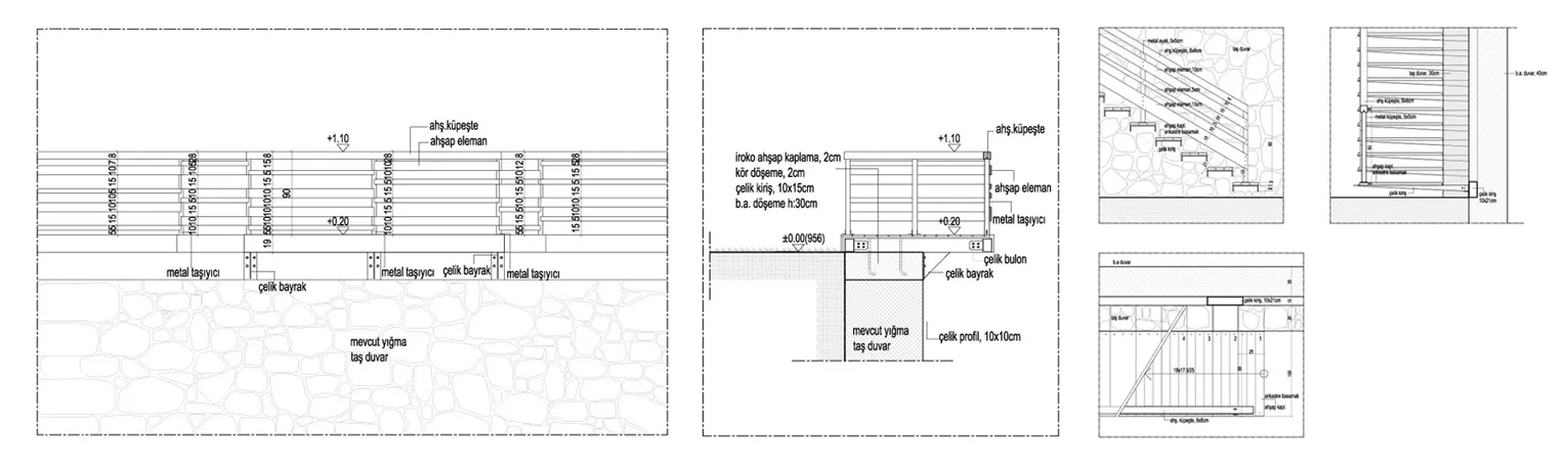 Yapılan alan çalışmalarında dere yatağı üzerinde bir dizi değirmen izine rastlanmıştır. Proje kapsamında söz konusu değirmenlerin yüzey kazıları ile açığa çıkarılması önerilmiştir. Yerleşimdeki endüstri tarihinin göstergesi olan bu izler görünür kılınarak, proje kapsamında peyzaj elemanları olarak değerlendirilmiştir. Proje genelindeki ahşap yürüme alanları ve platformlar için travers kullanımı önerilmiştir. Ahşapların Ilıç Barajı yapımı dolayısıyla su altında kalan Divriği-Bağıştaş demiryolu hattından elde edilmesi planlanmıştır.