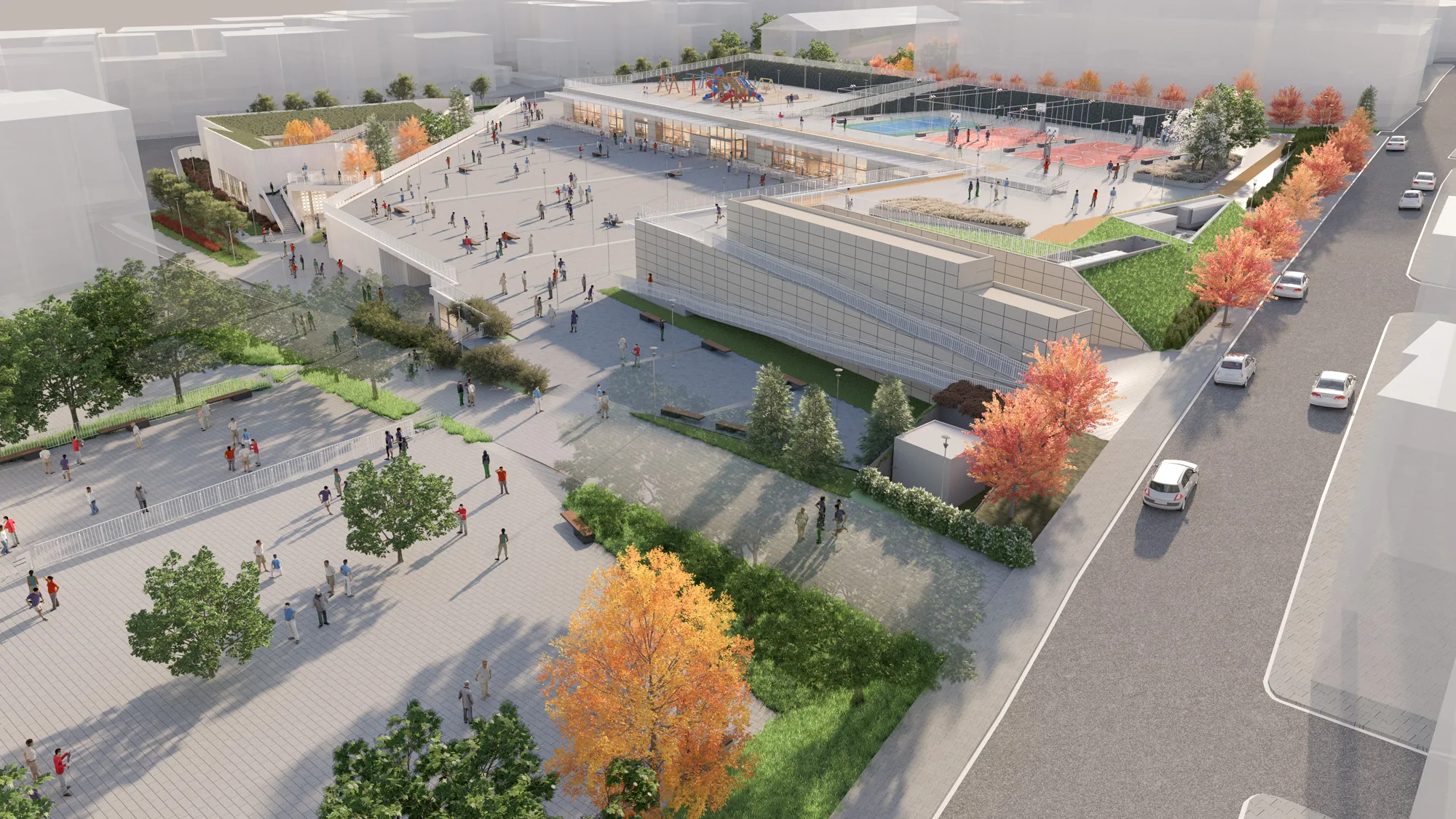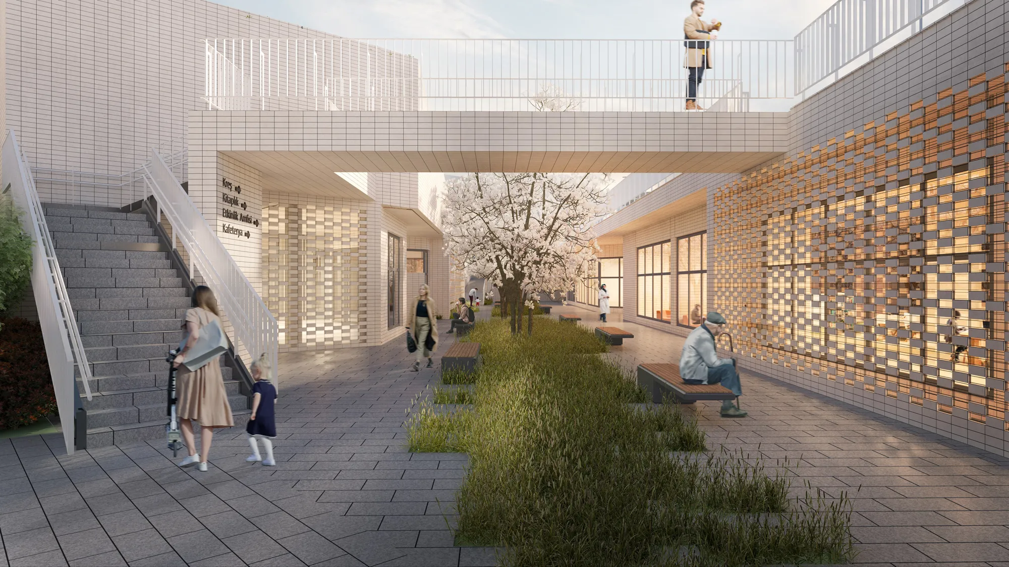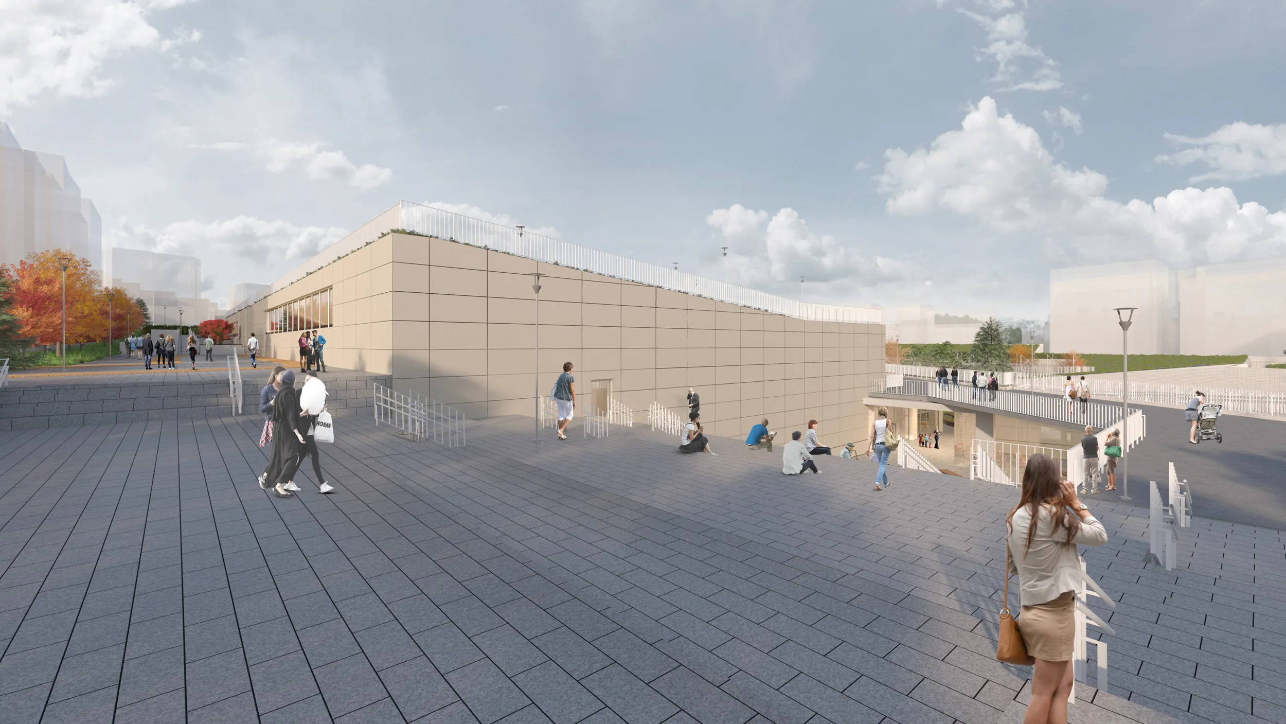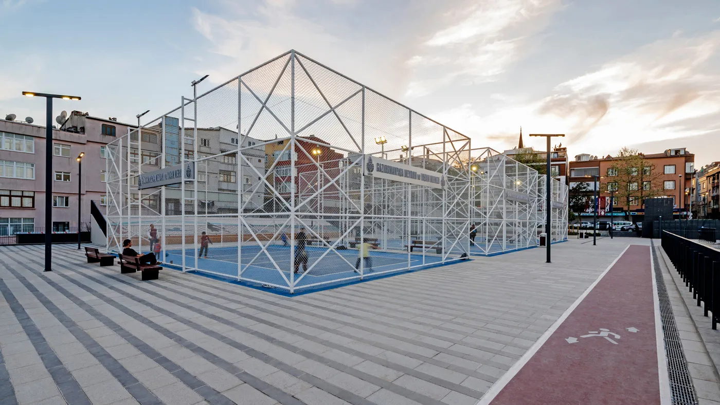 Eğimli topografik yapıya uyumlu olarak planlanan kademelendirilmiş plaklar (aktivite, meydan, eğitim-kültür) ve bu plakları birbirine bağlayan iç sokaklar ile kentsel bağlantılar kesintisiz bir sirkülasyon ağı oluşturacak biçimde kurulmuştur. Spor Merkezi ana girişleri, mahalle evi ve geçici pazar yerinin konumlandığı ‘’meydan’’ alan içinde köşe kotları tutan diagonal bir sirkülasyon hattı üzerine oturmaktadır. Bu duruma koşut olarak alanın alt kot sınırını oluşturan Selvili Sokak yayalaştırılmış; kreş, kitaplık, kafeterya ve etkinlik amfisi bağlantılarının kurulduğu dingin bir iç sokak ile alan içinde sürekliliği sağlanarak yaya erişim senaryosu güçlendirilmiştir.