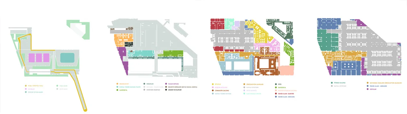 Yer hafızasını ve kamusal ihtiyaçları gözeterek oluşturulan karma işlevli programda yüzme havuzu, cimnastik salonu, minder sporları salonu, fitness salonu gibi spor mekanları ağırlıkta olmakla birlikte; rekreatif, sosyal, kültürel ve eğitim amaçlı mekanlara da yer verilmiştir. 26.700 m² kapalı 14.000 m² açık alandan oluşmakta olup, 202 araçlık bir otopark kapasitesine sahiptir.